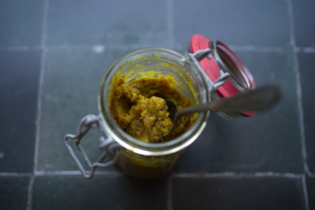 - Der Senf sollte mindesten drei Wochen stehen, bevor er probiert wird.